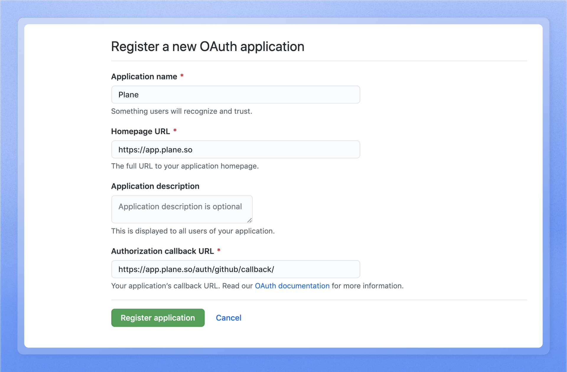 Configure Plane as an OAuth app on GitHub